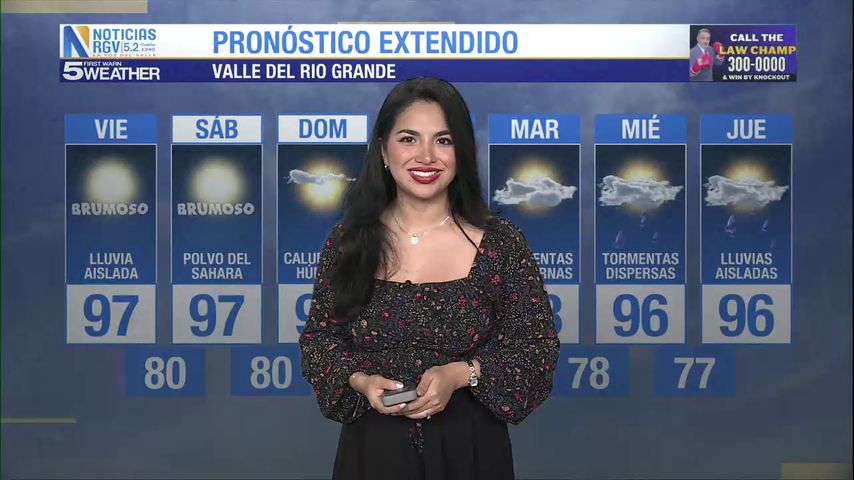 Viernes 6 de Junio: Brumoso con lluvia aislada, temperaturas en los 97s