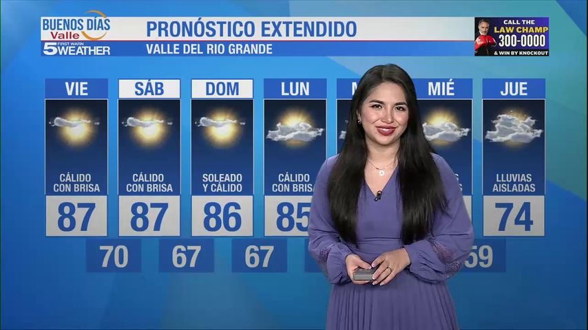Viernes 7 de Febrero: Cálido con brisa, temperaturas en los 87s
