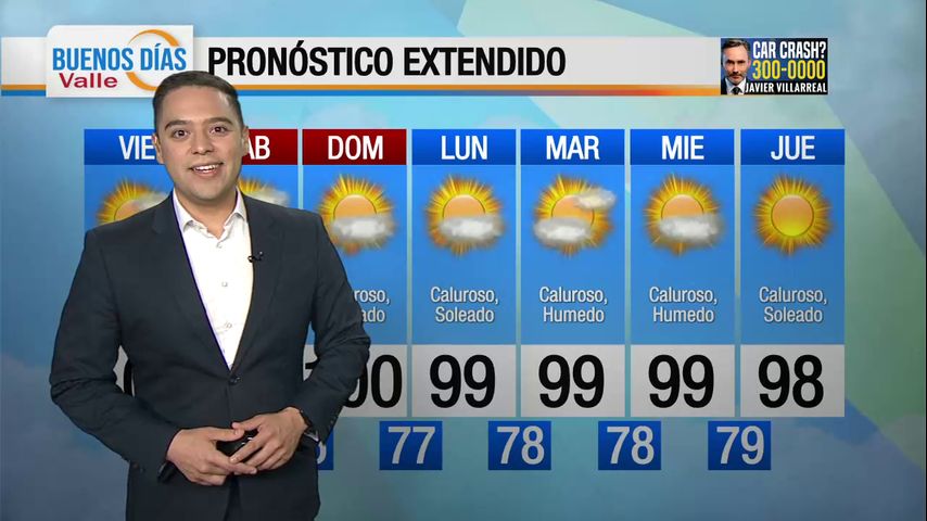 Viernes 7 de Junio: Caluroso y húmedo, temperaturas en los 100 °F