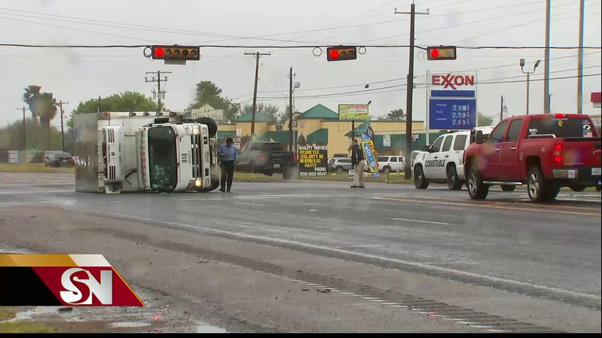 ELSA - Un camion se volcó entre la calle siete y la 493 en Elsa.