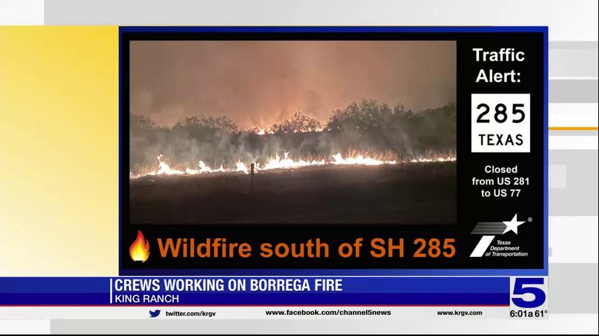 Original story: A portion of State Highway 285 remains closed as crews continue to battle a wildfire near Kingsville Thursday morning, according to the Texas Department of Transportation.
