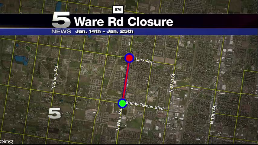 MCALLEN – An area off of Ware Road in McAllen will be closed until Jan. 25.