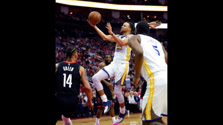 The Warriors were up by 12 in the first half but Houston cut it to 54-52 by halftime. A 3-pointer by Gordon gave the Rockets their first lead early in the third quarter and one by P.J. Tucker seconds later made it 60-56.