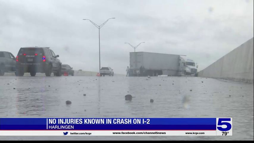 WATCH: 18-wheeler crash causes traffic delays in Harlingen