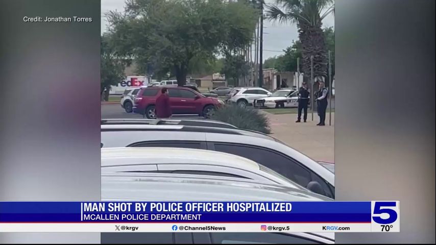 A man was shot by a McAllen police officer after charging at officers with a knife outside the McAllen police station, police said.