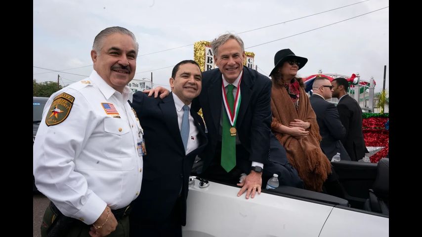 From left: Webb County Sheriff Martin Cuellar poses with his brother, U.S. Rep. Henry Cuellar, D-Laredo, and Gov. Greg Abbott in downtown Laredo on Feb. 23, 2019. Bob Daemmrich/ZUMA Press Wire via REUTERS