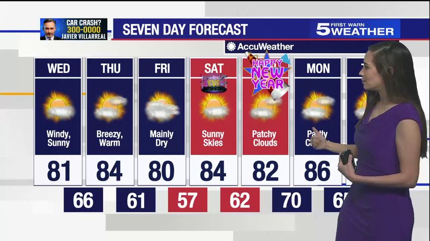 Wednesday Dec. 28, 2022: Windy, sunny, and temperatures in the 80s