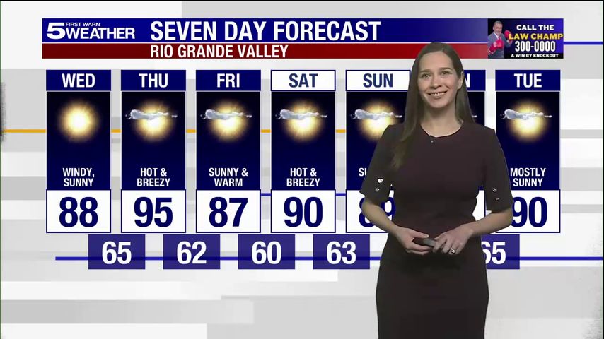 Wednesday, Feb. 25, 2026: Windy and sunny, temps in the 80s