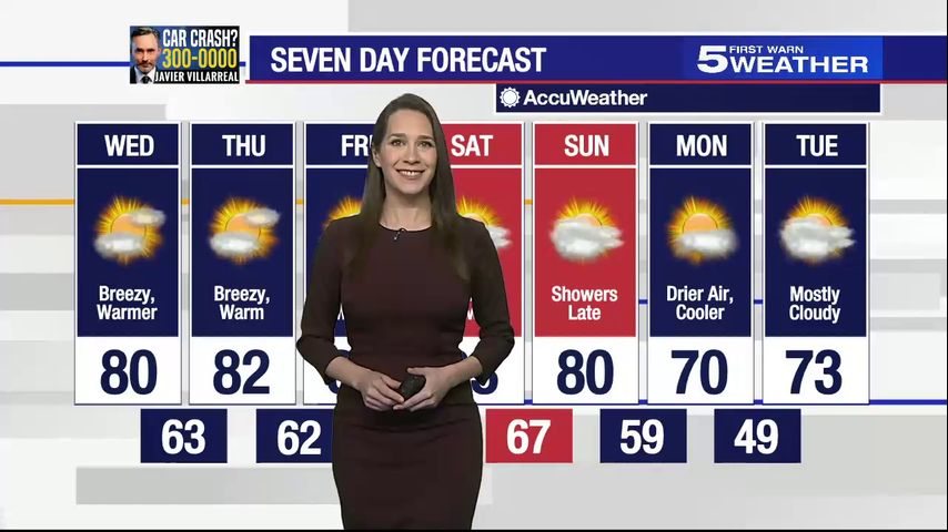 Wednesday, Feb. 7, 2024: Breezy and warm with a high of 80 degrees Fahrenheit