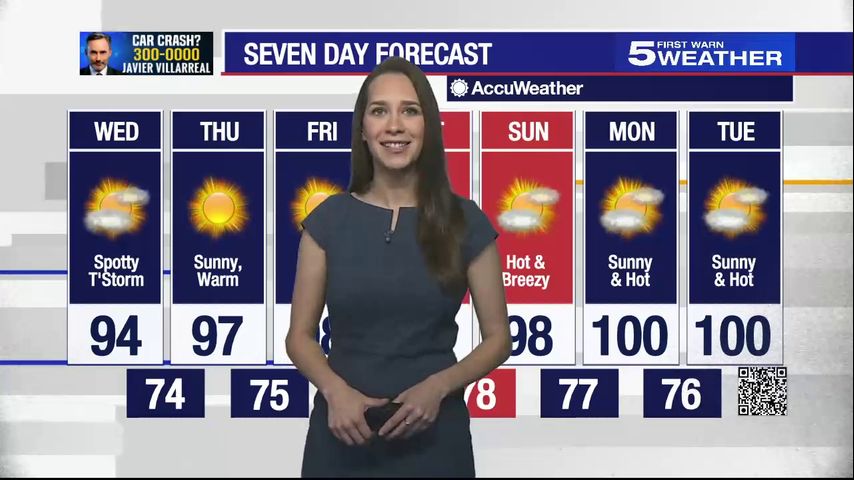 Wednesday, June 7, 2023: Spotty thunderstorm, temps in the 90s