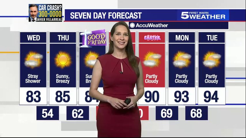 Wednesday, March 27, 2024: Stray shower, temps in the 80s