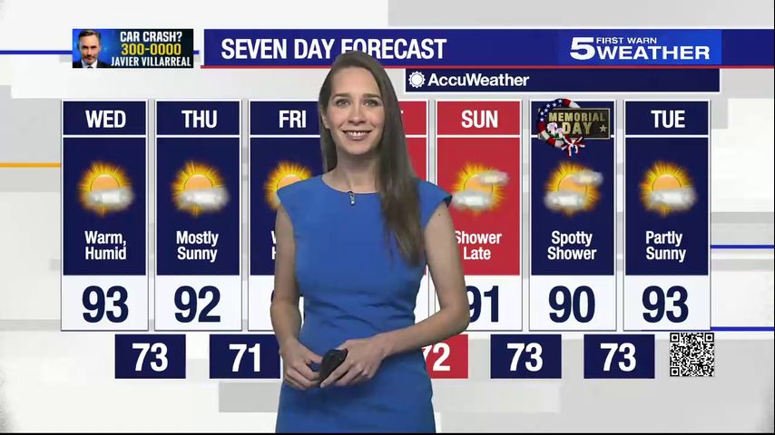 Wednesday, May 24, 2023: Warm and humid, temps in the 90s