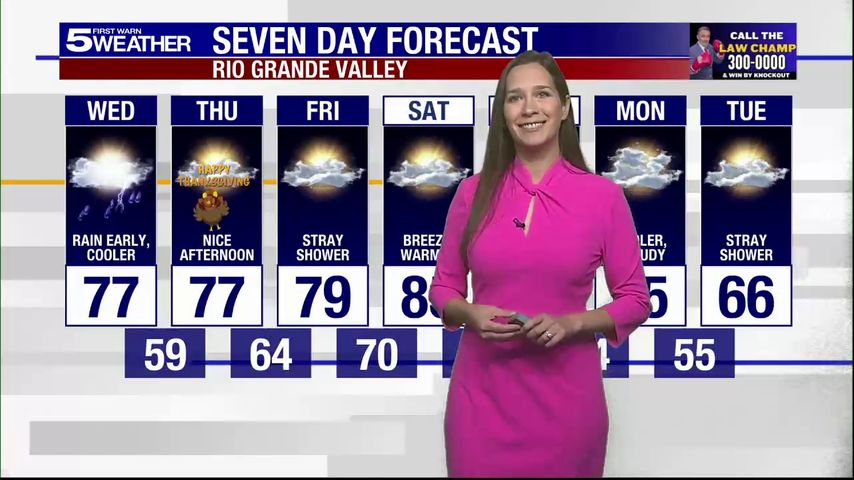 Wednesday, Nov. 26, 2025: Rain and cooler temperatures in the 70s