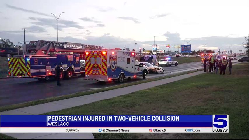 Pedestrian injured following two-vehicle crash near Weslaco Border Patrol Station