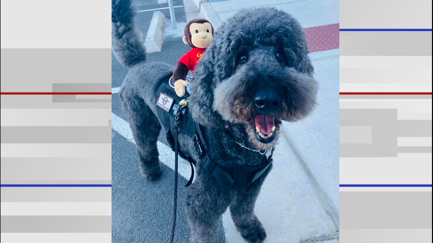 The standard poodle was welcomed into the Weslaco Police Department in May 2023 as the first therapy and emotional support animal for the community.