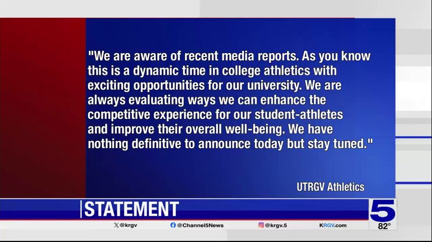 UTRGV sent a statement to Channel 5 that says in part -- the university has nothing definitive to announce today-- but to stay tuned.