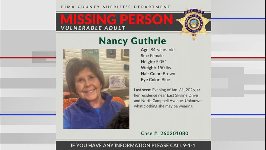 Nancy Guthrie was last seen Saturday night at the affluent Catalina Foothills area home where she lived alone. She was reported missing Sunday. Someone at a church called a family member to say Guthrie wasn't there, leading the family to search her home and then call 911, Nanos said.