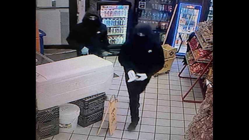Two male suspects entered the store wearing black Nike hoodies, black jeans, black shoes, and black face coverings and black gloves, according to the sheriff's office.