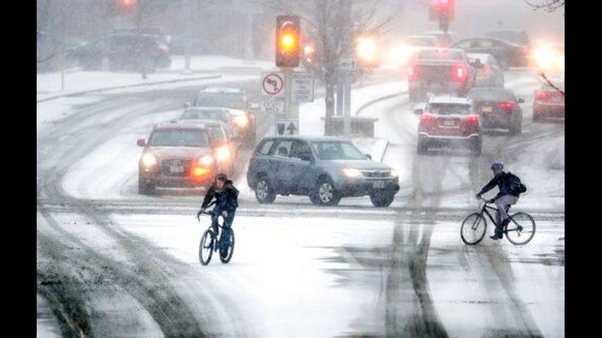 The snow was part of a wall of hazardous weather that moved from the Dakotas across the Great Lakes states. The storm brought snow, ice and strong winds, followed by deep cold. The highest snowfall totals were expected in Vermont, New Hampshire and Maine, which could see up to 18 inches (46) centimeters.