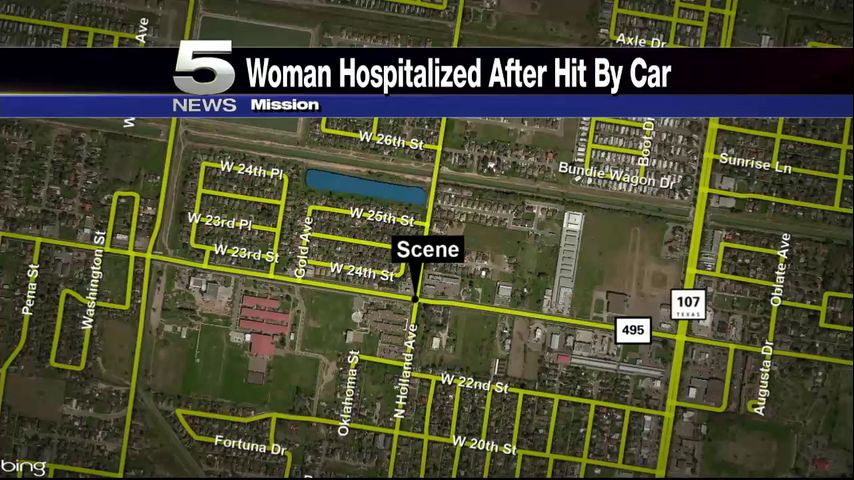 Authorities say a 56-year-old woman was walking with a child when she was hit. It happened on 495 and Holland in Mission just before 9:30 PM on Saturday.