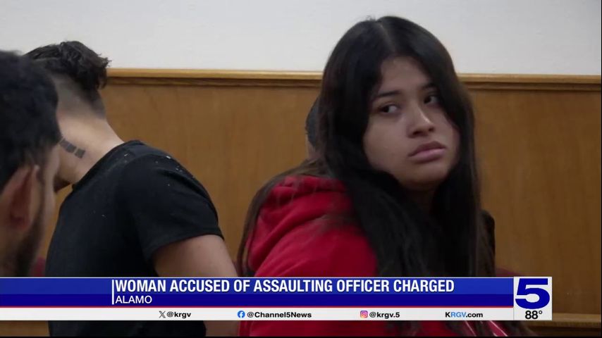 A 24-year-old woman was arraigned on multiple assault charges Monday after kicking a police officer in the groin and punching him during a traffic stop in Alamo, according to a criminal complaint obtained by Channel 5 News.