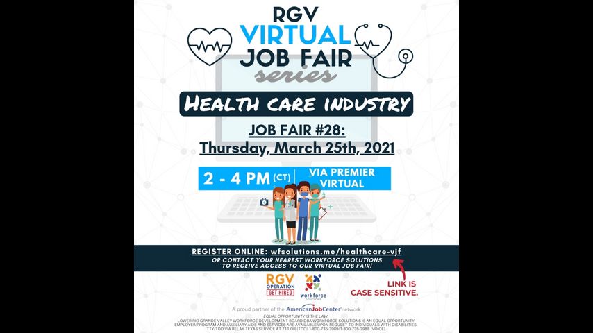 Texas Workforce Solutions will host a virtual job fair Thursday, March 25 from 2:00 p.m. to 4:00 p.m.