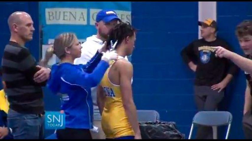 Buena Regional High School wrestler Andrew Johnson, who is black, had a cover over his hair, but referee Alan Maloney , who is white, said that wouldn't do. Johnson won Wednesday's match but appeared visibly distraught.