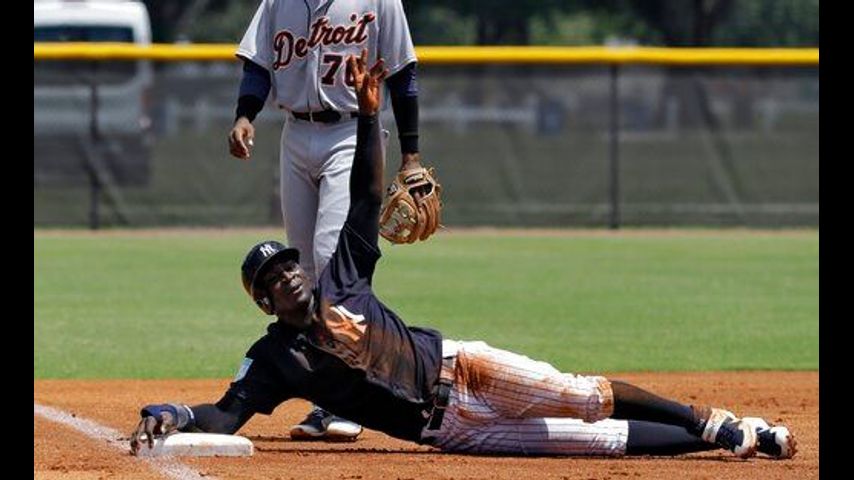 Playing against Detroit Tigers minor leaguers and in front of Yankees owner Hal Steinbrenner, Gregorius singled twice and cleanly fielded three grounders but had an error for an errant throw to first base.