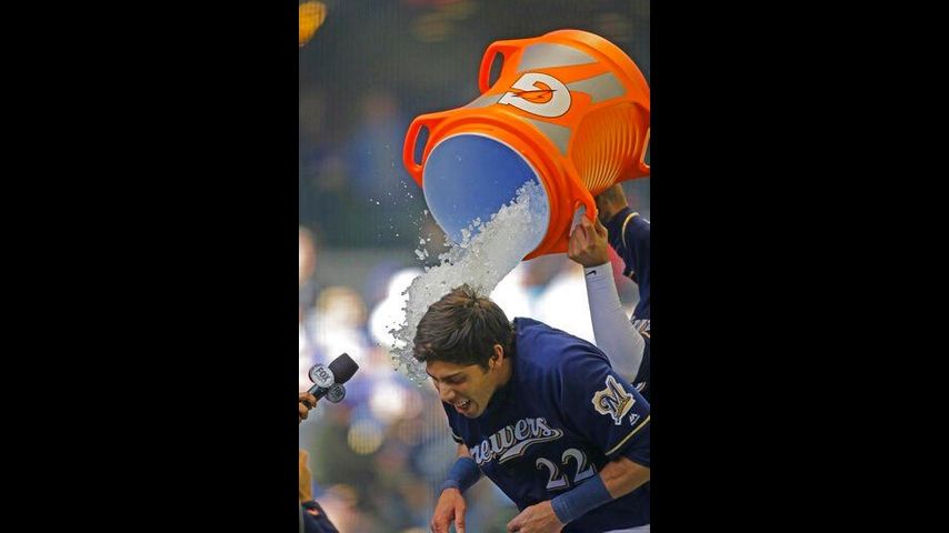 Yelich tossed his helmet in the air in celebration as Cain slid face first across the plate, giving Milwaukee three wins its opening four-game set against rival St. Louis. Yelich's teammates rushed the field and doused the reigning NL MVP with Gatorade in a raucous celebration at second.