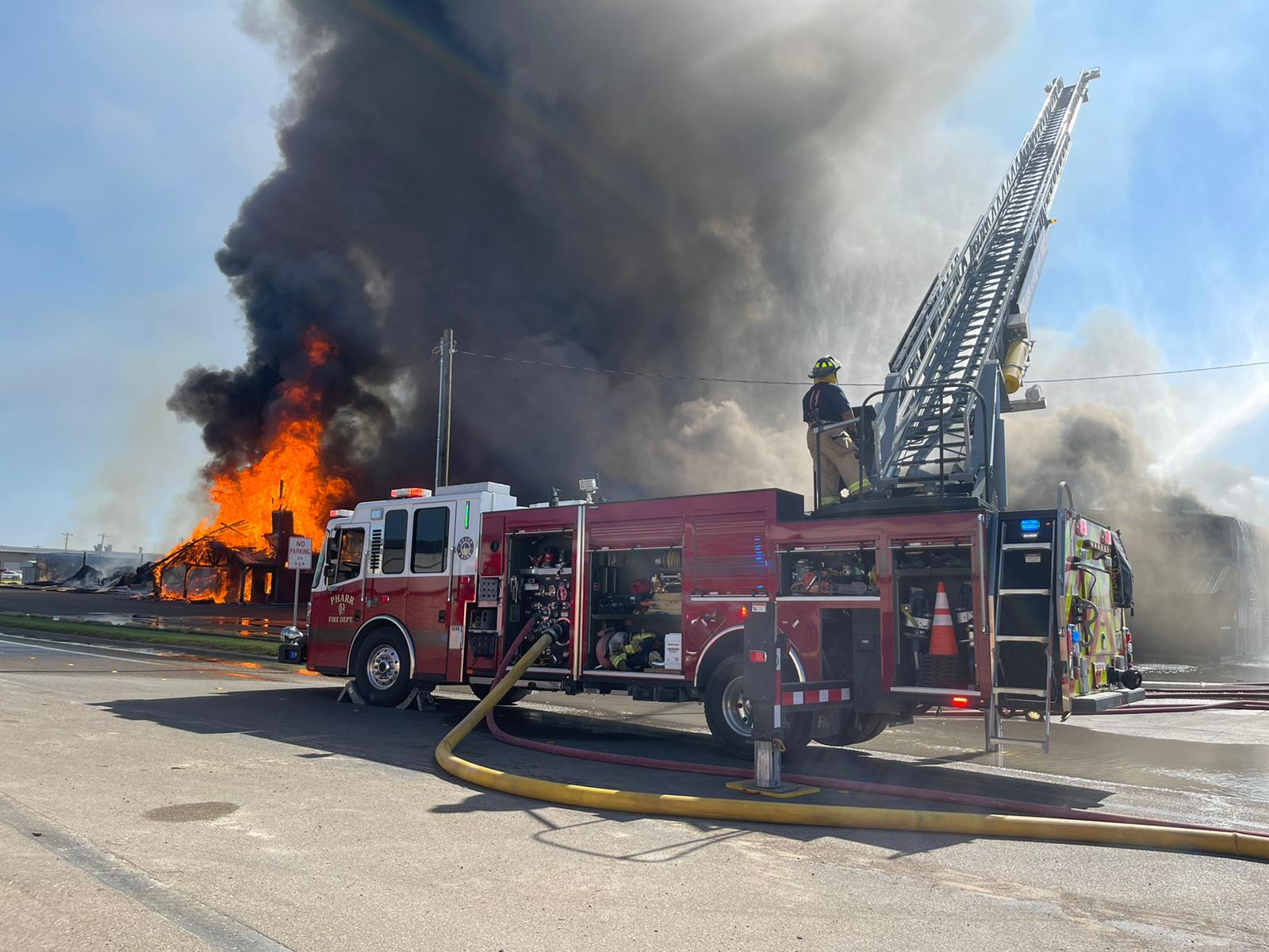 Firefighters from multiple agencies battled a blaze at a Pharr business on Saturday.